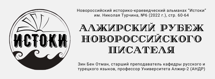 Zin Ben Otman, Senior Lecturer in Russian and Turkish Languages, Professor at Algiers-2 University (Algeria) • Novorossiysk Historical and Local Lore Almanac "Istoki" Named After Nikolay Turchin, No. 6, 2022, pp. 60–64.