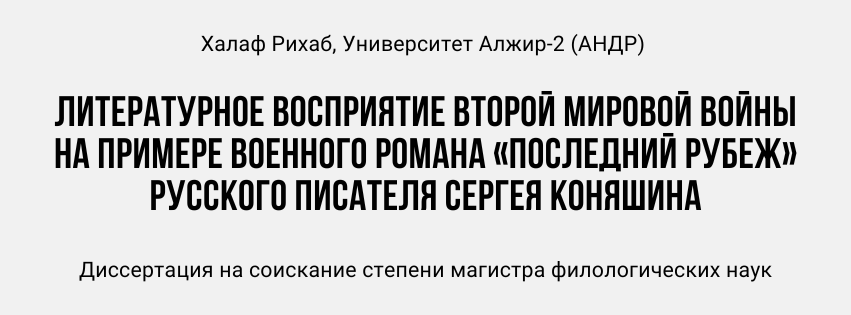 Literary Perception of World War II Through the Example of the War Novel 'The Last Frontier' by Russian Writer Sergey Konyashin